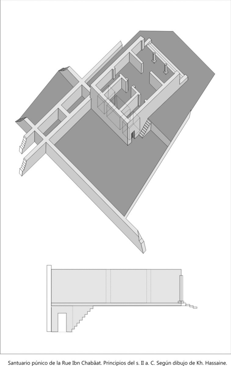En la actualidad sabemos que tiene fuertes influencias del mundo púnico, donde existen paralelos de plantas arquitectónicas similares. En la ciudad de Cartago se ha documentado el templo de la Rue Ibn Chabâat, del s. II a. C. que también presenta un pórtico con columnas, tres naves, y en este caso, las habitaciones posteriores se encuentran en el sótano.