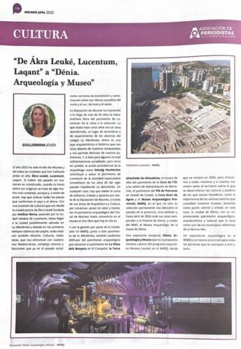 Y con la gestión por parte de la Fundación CV MARQ, junto a este yacimiento de la Albufereta, también podemos disfrutar del patrimonio arqueológico que atesoran el yacimiento de La Illeta dels Banyets en El Campello, la Torre almohade de Almudaina, el museo de sitio del yacimiento de la Cova de l´Or y su centro de Interpretación en Beniarres, el yacimiento del Plà de Petracos en Castell de Castell, la Cava Gran de Agres y, el Museo Arqueológico Provincial, MARQ, en el que no solo su colección permanente nos descubre el pasado de la provincia, sino también y hasta abril de 2026 cede sus salas temporales a la historia de Denia, a través del MAD, el Museu Arqueològic de la Ciutat de Dénia.
