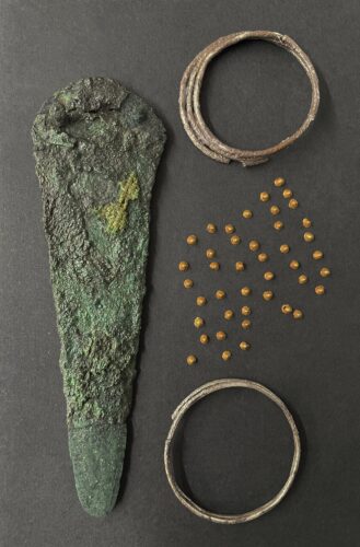 La muestra, compuesta por un excepcional conjunto de piezas con más de 4.000 años de antigüedad hallado en una sepultura argárica del Yacimiento de San Antón (Orihuela), ha sido promovida por la Fundación CV MARQ en colaboración con el Área de Cultura de la Diputación de Alicante, a través del MARQ y el MAN.
