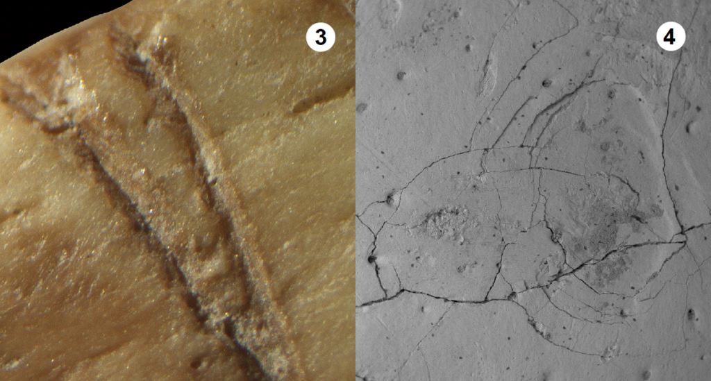 3- Marcas de corte realizadas con sílex vistas con microscopio.